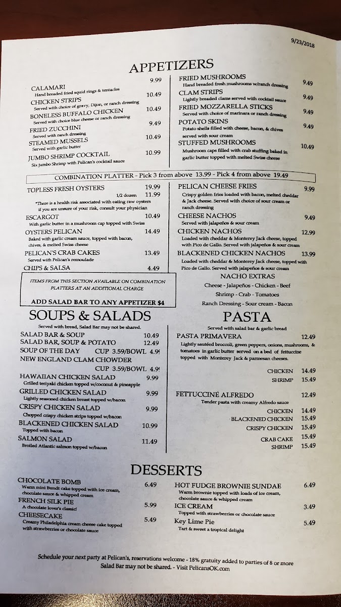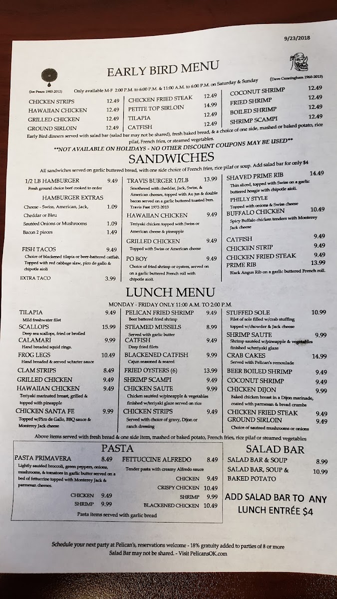 Whether you're visiting with friends or enjoying a romantic dinner, Pelican's Restaurant consistently delivers a memorable dining experience, earning its reputation as a must-visit in the heart of Oklahoma.